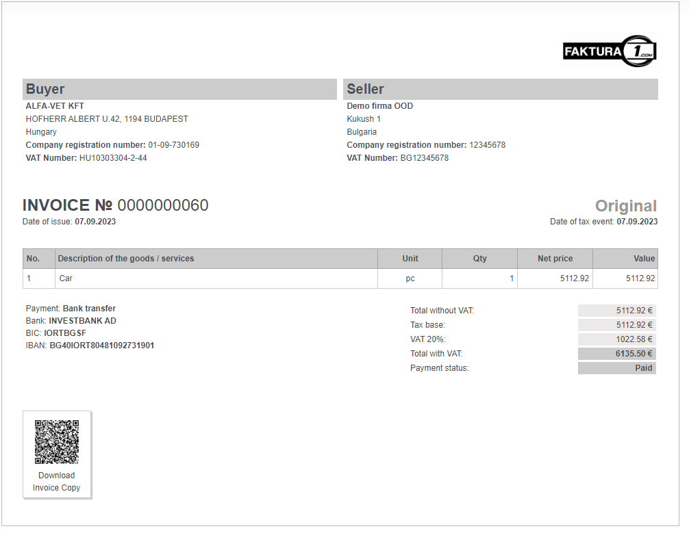4. Фактурата на английски език е готова за разпечатване или изпращане до вашите клиенти.