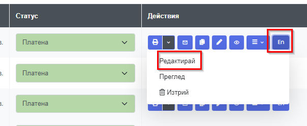 5. Ако имате нужда да редактирате фактурата, можете да го направите от списъка с фактури: